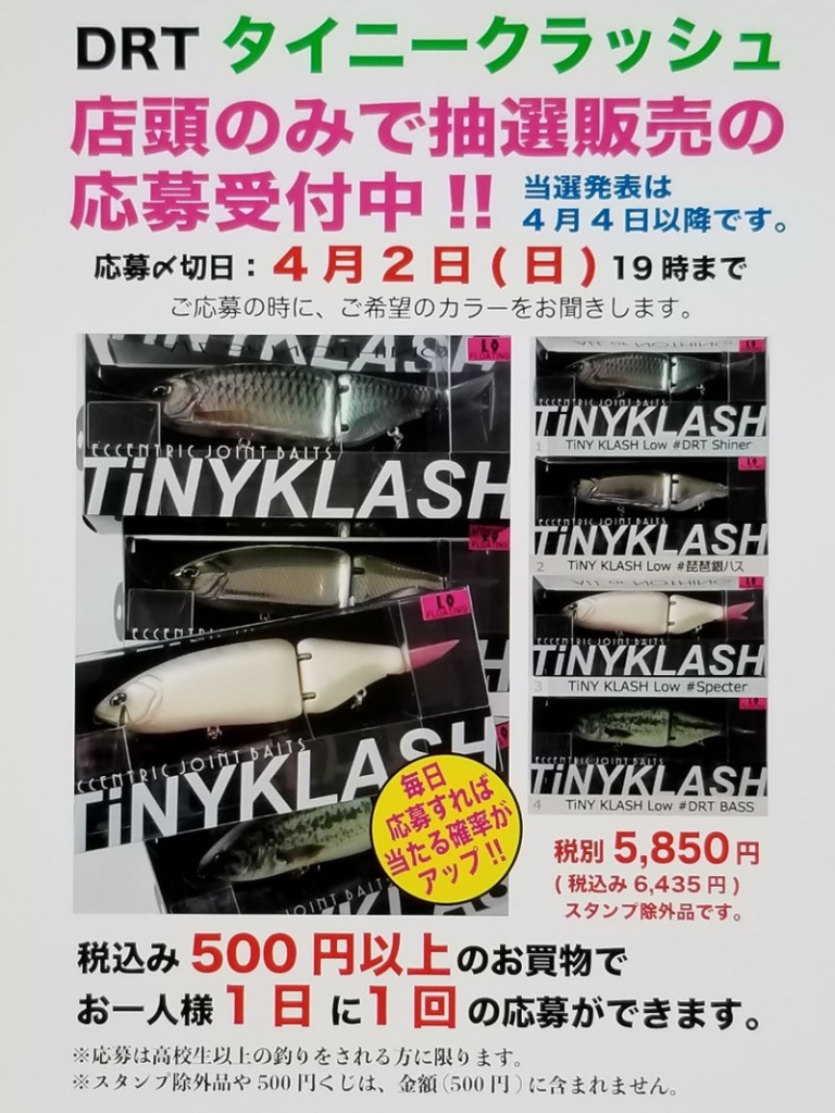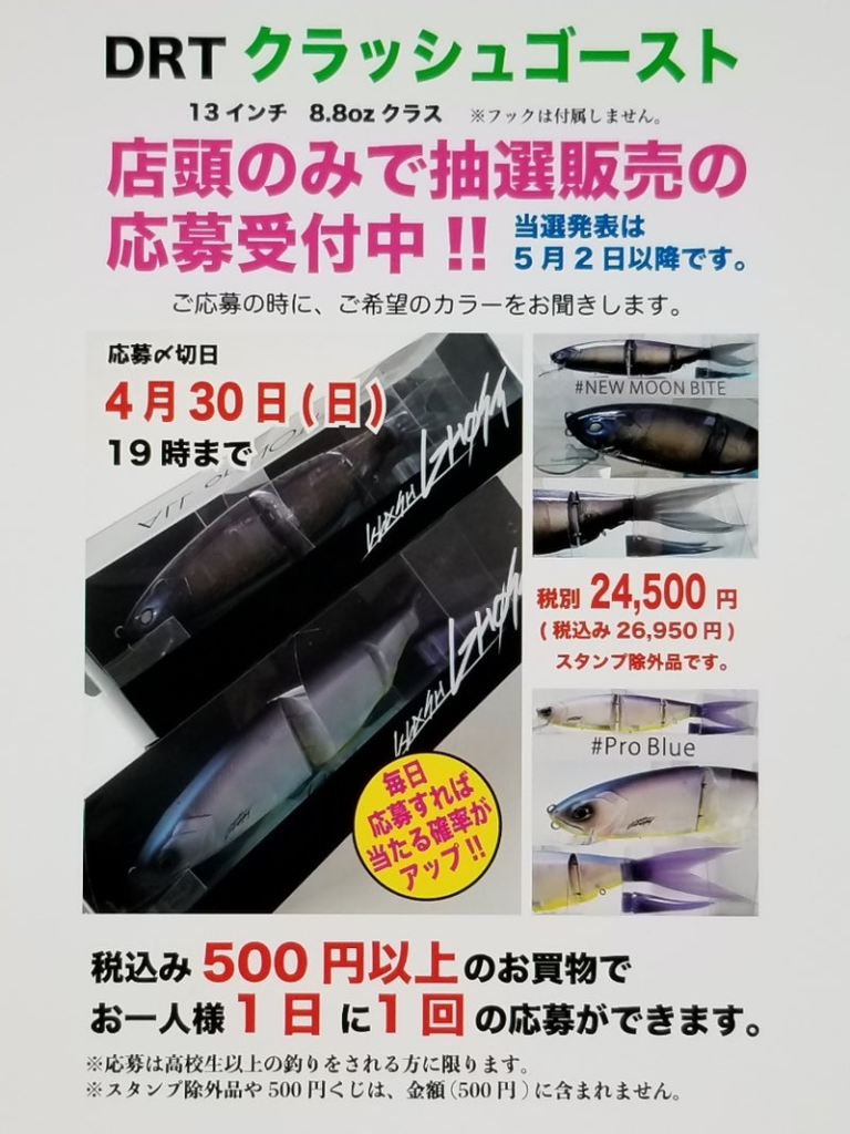 - 2023年4月8日~16日 Fish!フィッシュタックルショップ Fishオリカラ タイニークラッシュ・K9・ゴースト 店頭抽選